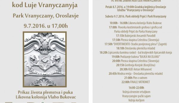 14. Vrtna zabava kod Luje Vranyczanyja Novosti I ove godine, 8. i 9. srpnja, održati će se 14. Vrtna zabava kod Luje Vranyczanyja. Oroslavjem će prošetati grofovi… 02/06/2016 0 758